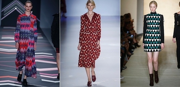 Cintura marcada, franjas e estampas geométricas são as apostas para o inverno de 2015